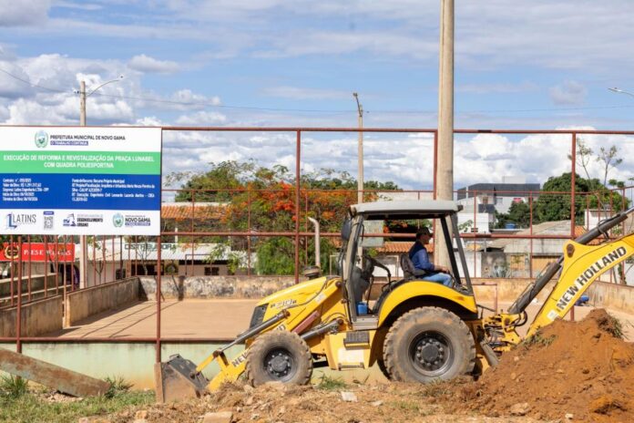 A Prefeitura de Novo Gama avança na revitalização da Praça do Lunabel e da quadra esportiva do bairro, obras que estão em fase de nivelamento do solo e preparação das calçadas. O projeto, orçado em cerca de R$ 1,2 milhão, é financiado com recursos de emenda parlamentar e verba própria do município.